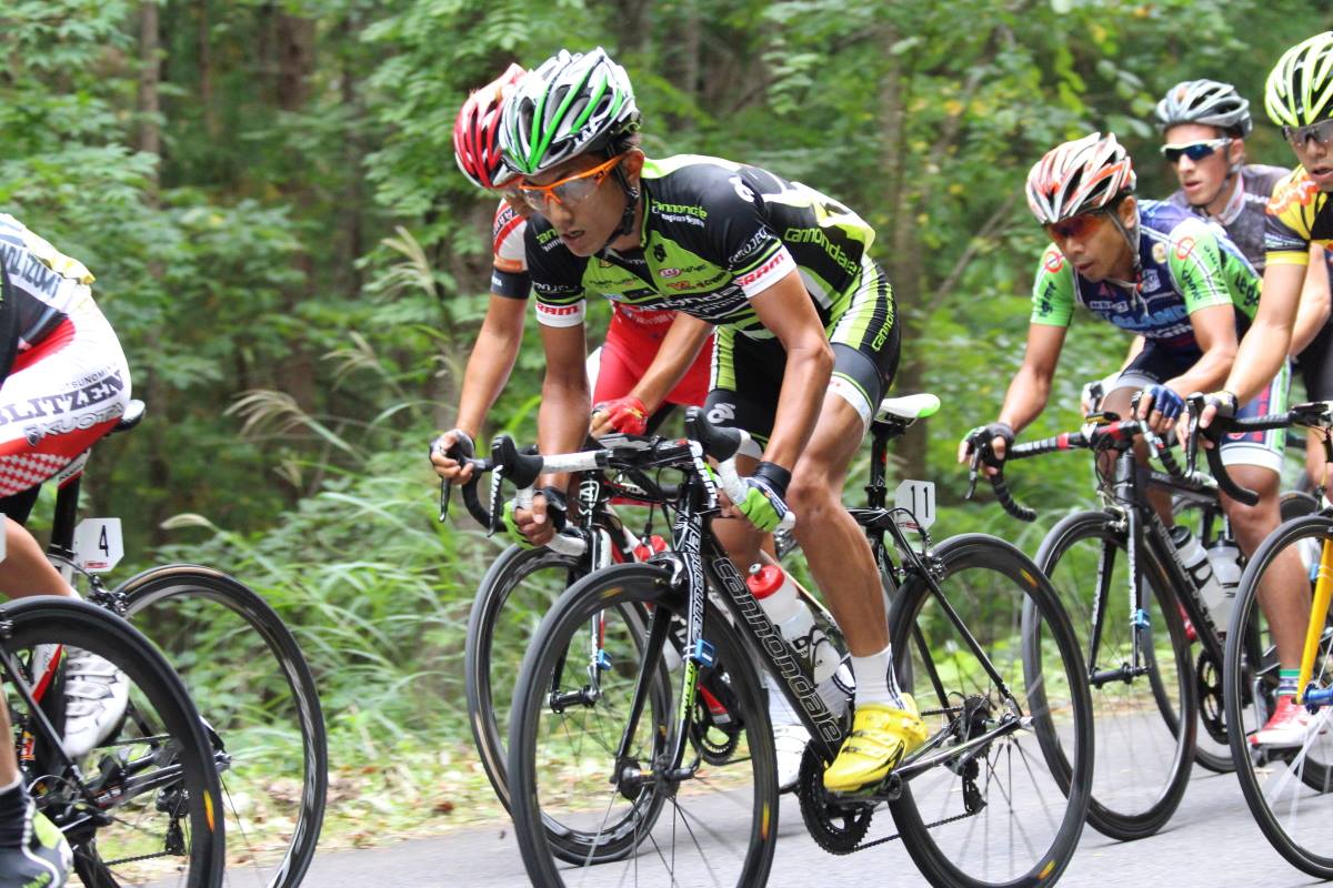 前回の群馬CSCでのレースは雪の降る中でのレースだったが、今回は気温も天気も非常にレース日和の中行われた。レース距離が長いことからウォーミングアップは短く汗が流れる程度で終了した。今回はチームからは原川選手、森本選手が序盤の逃げに乗りレースをリードする作戦、他の者は状況を判断しながら仕事をこなし高ポイント獲得を狙いとした。スタート後幾度となくアタックがかかり、逃げを作る動きに入るがなかなか決まらない。最初の逃げはマトリックスのビセンテ選手。回りは「いかせる」という判断。逃げを容認。その後、チームメイトの森本選手が心臓破りの坂で右側からスルスルとアタック。これも容認。その後何名かの後追いの動きがあり集団はすべて容認でペースが一気に落ちた。